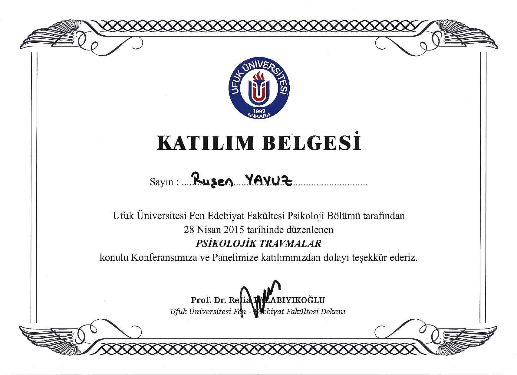 Üniversitesi Fen- Edebiyat Fakültesi Psikoloji bölümünden 2016 yılında mevzun oldum.Sonrasında