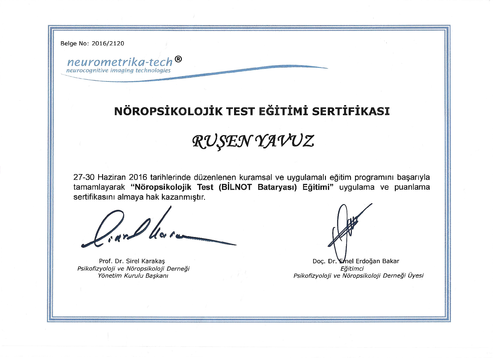 Davranışçı Terapi, Yas ve Kayıp Terapisi ve Travma eğitimlerini aldım. 2017 yılında Gazi